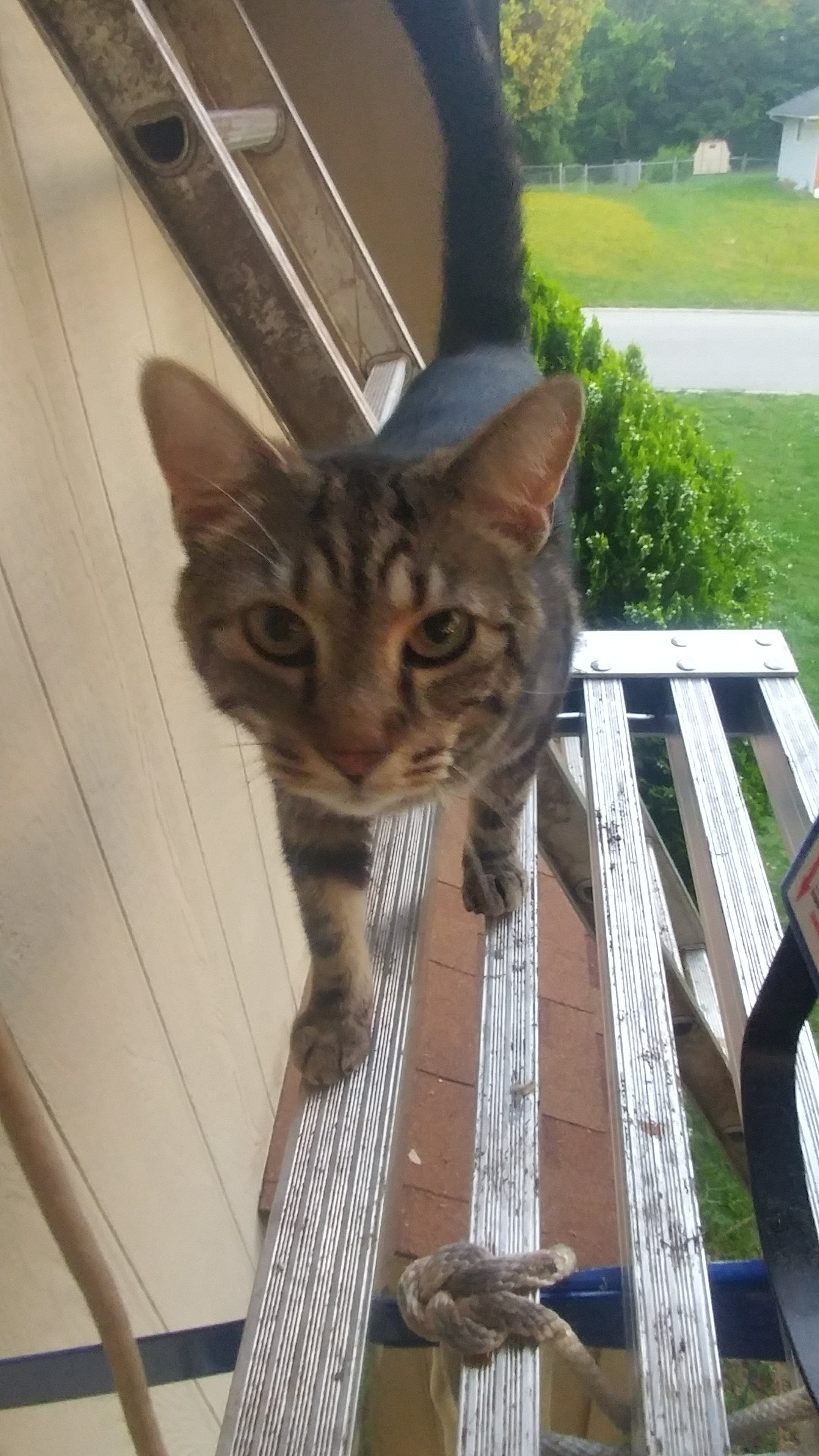I did have a visitor later in the evening. Apparently one of our cats figure out how to climb the extension ladder…
